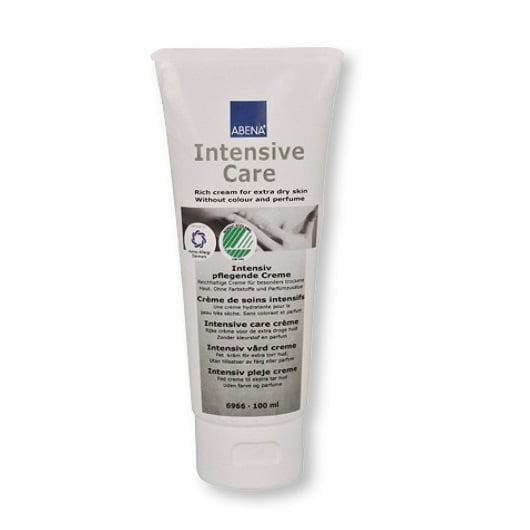 Abena Intensive Care är lämplig för torr hud som hjälp för att bevara hudens naturliga fuktnivå. Den smidiga krämen (70 % fett) hjälper till att förbättra hudens fuktnivå och yta samt skapar en barriär utan att kännas fet på huden.